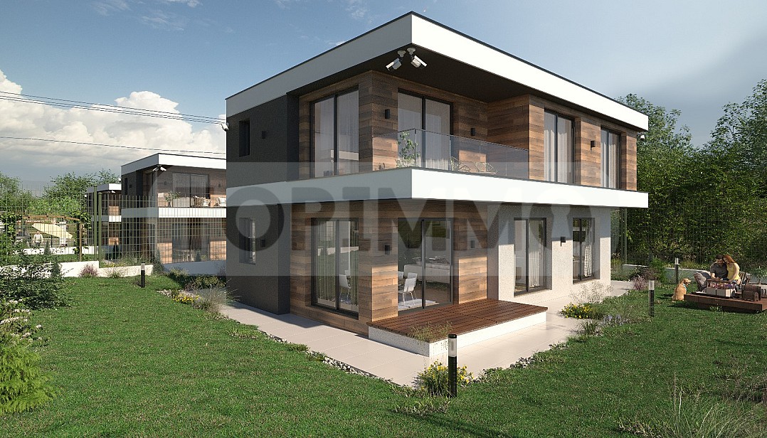 ТОПИММО предлага за продажба двуетажна къща ново строителство в затворен комплекс от 6 броя еднофамилни къщи изпълнени в монолитно строителство чрез модерна архитектура и естетика, в заобикаляща зелена среда в село Звездица. Селото е разположено на 10 км от град Варна в посока Бургас в близост до бъдещата автомагистрала Черно море. Най-близкият плаж е в кв. Аспарухово – на 10 минути път с автомобил.