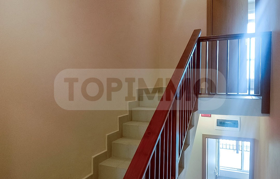 Eine Treppe führt in die zweite Etage mit zwei Schlafzimmern, jeweils mit eigenem Bad, eines mit Dusche, das andere mit Badewanne. Eines der Schlafzimmer verfügt über eine Terrasse mit Blick auf den Garten und die grünen Hügel mit dem Meer im Hintergrund.