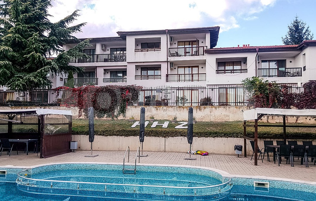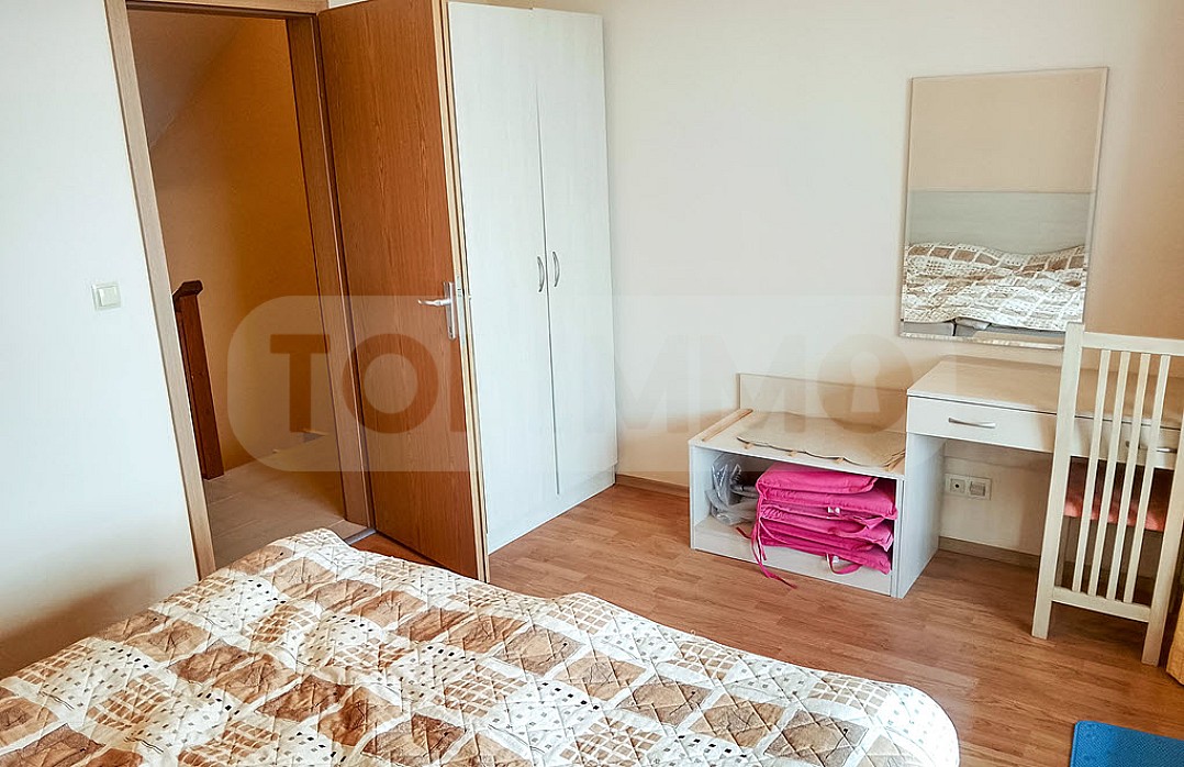 TOPIMMO bietet ein komplett möbliertes dreistöckiges Haus mit kleinem Privatgarten in der beliebten Ferienanlage Harmony Hills in Rogachevo zum Verkauf an, nur 4 km vom Ferienort Albena und dem Meer sowie 20 km von Varna entfernt.