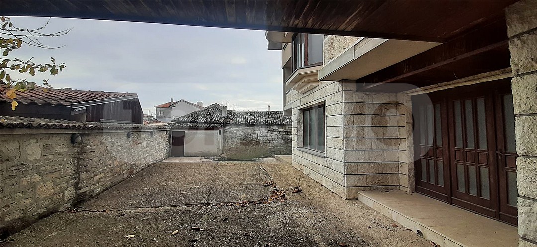 В двора има 3 паркоместа, навес с камина и кът за отдих.