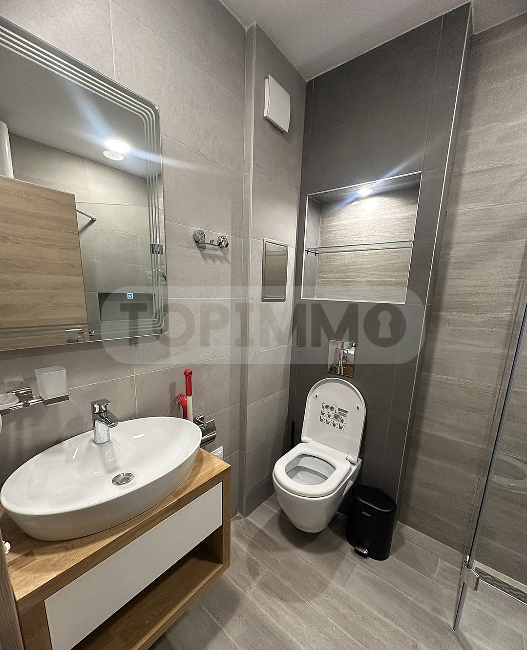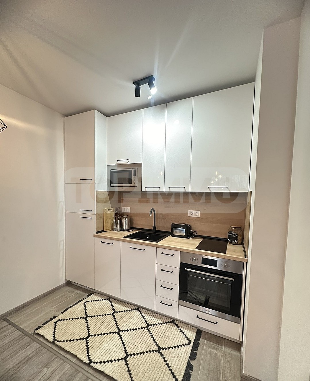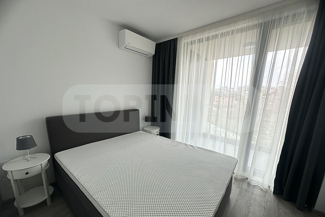 ТОПИММО предлага под наем двустаен апартамент в елитен затворен комплекс в Св. Св. Константин и Елена. На пешеходно разстояние има футболно игрище и тенис корт, паркова зона, бутикови магазини и хипермаркет, банка, термален комплекс, заведения за хранене и кафе, удобни спирки на градския транспорт.