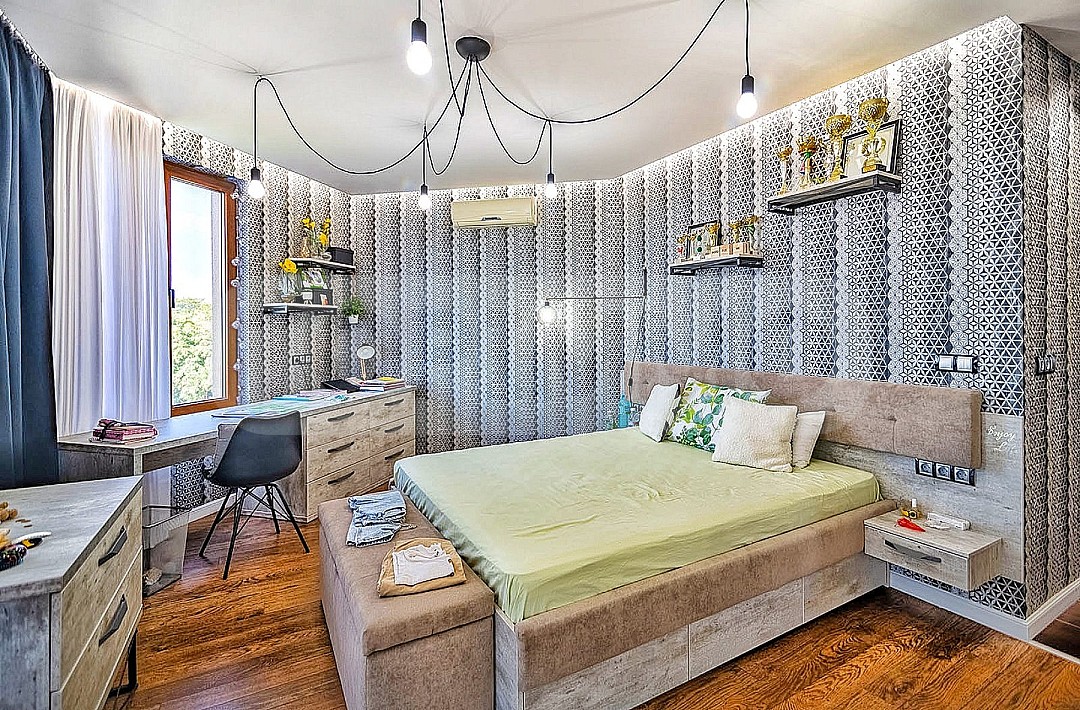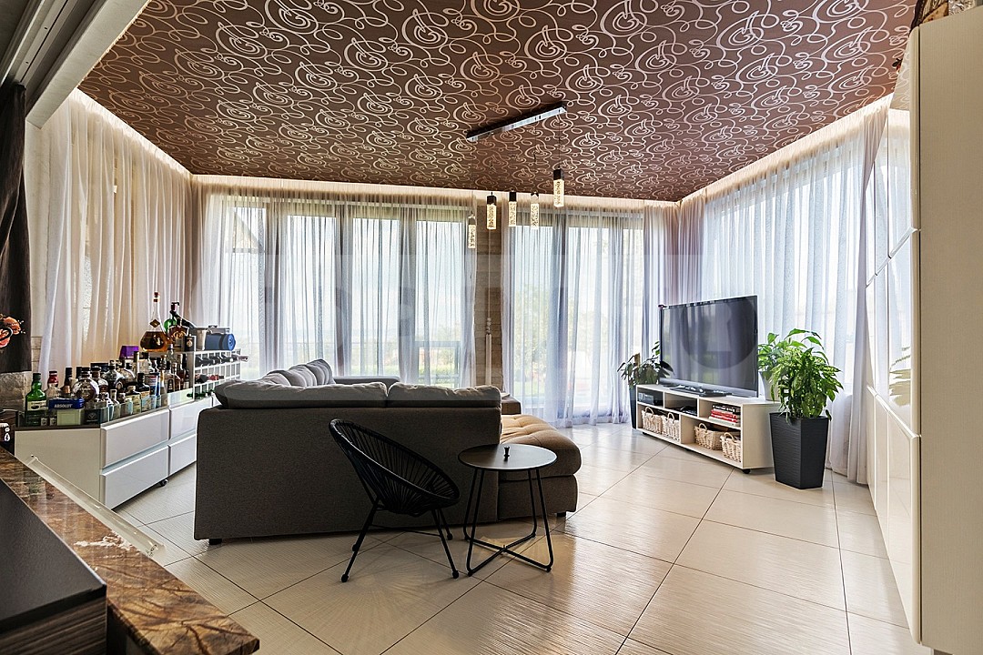 - Второ ниво: 2 спални с топла връзка, стая-гардеробна, голяма усвоена тераса, голяма баня с хидромасажна вана, будоар с възможност за втора баня и малка закрита тераса към него.