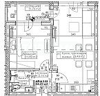 Апартаментът се намира на четвърти етаж от седем с асансьор, със западно изложение и следното разпределение: антре, всекидневна с кухненски бокс 23.5 кв.м., спалня 11.9 кв.м., тераса с излаз от двете стаи, санитарен възел. Имотът е подходящ както за лично ползване, така и с цел инвестиция за отдаването му под наем за нощувки.