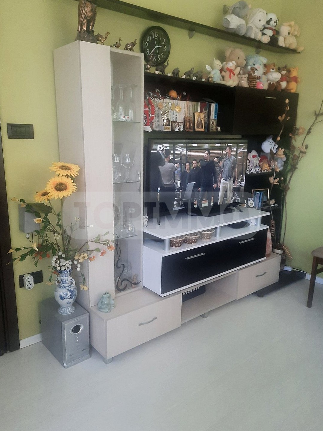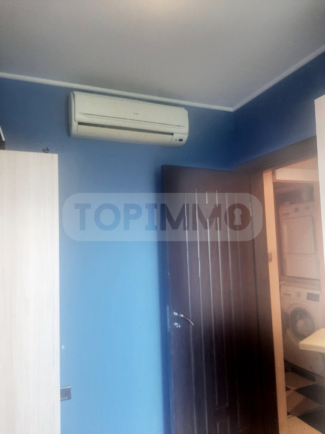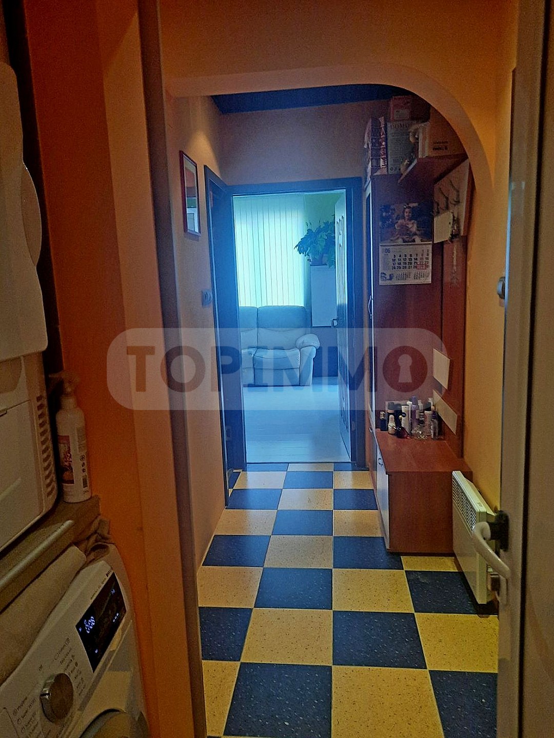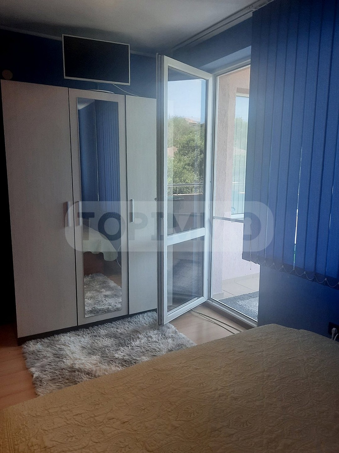 Имотът е се състои от 3 непреходни стаи: дневна, голям кухненски бокс, спалня, коридор, перално помещение, баня с тоалетна общо. От дневната и спалнята се излиза на покриета тераса с площ 5.5 кв.м., от която се открива чудесна панорамна гледка