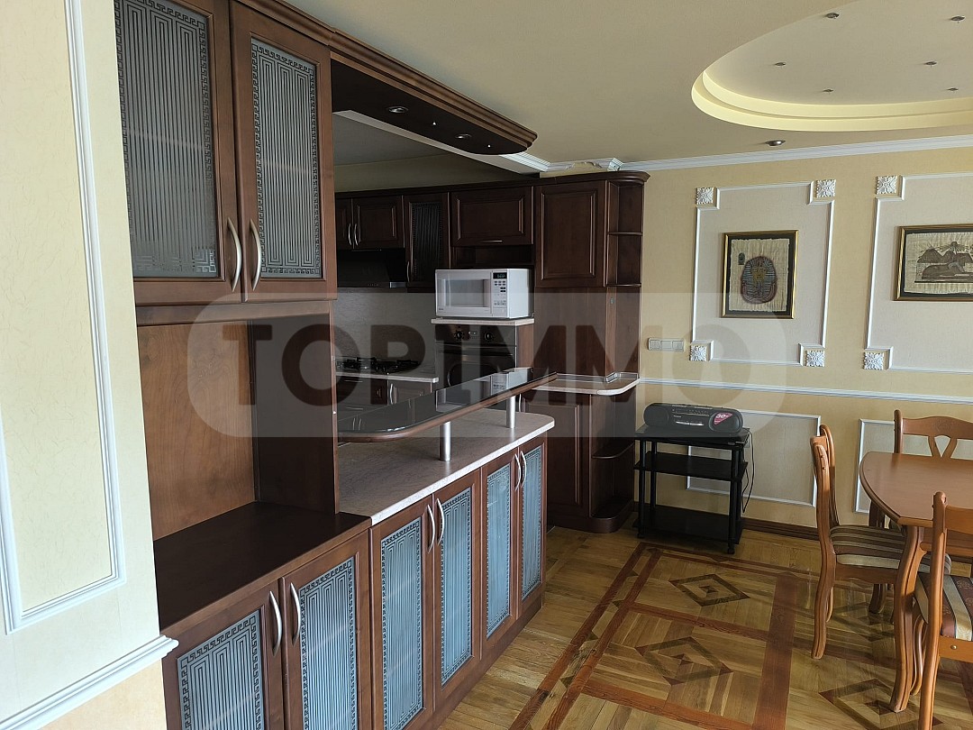 Квартира впечатляет своей уникальной дизайнерской и дорогой мебелью, которую редко встретишь в арендной недвижимости.