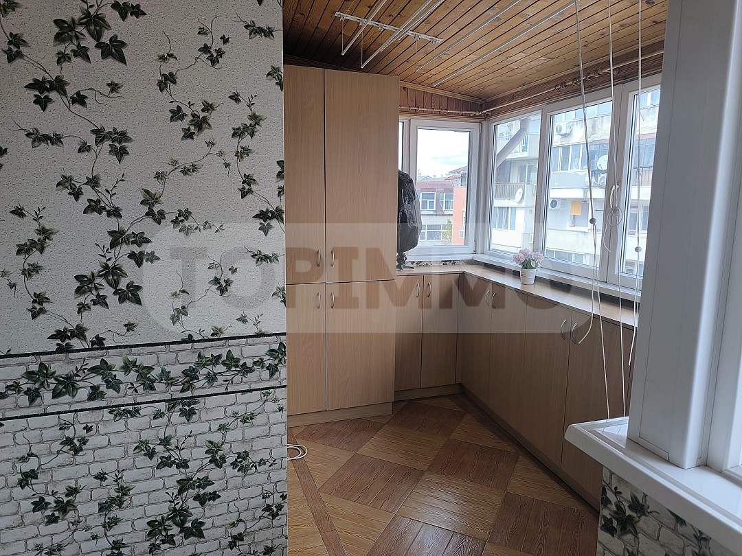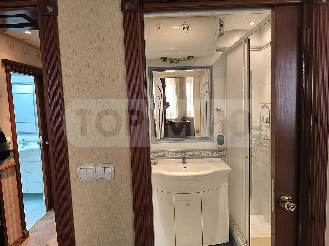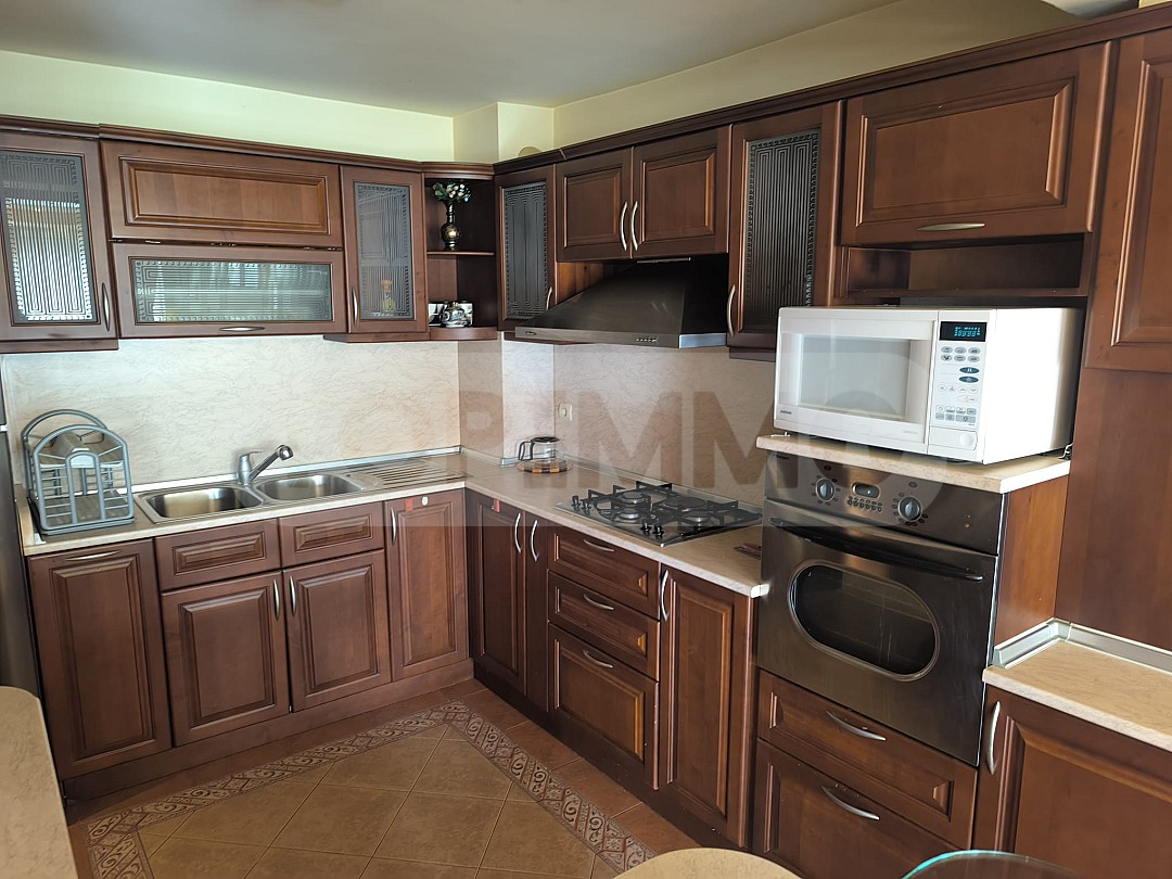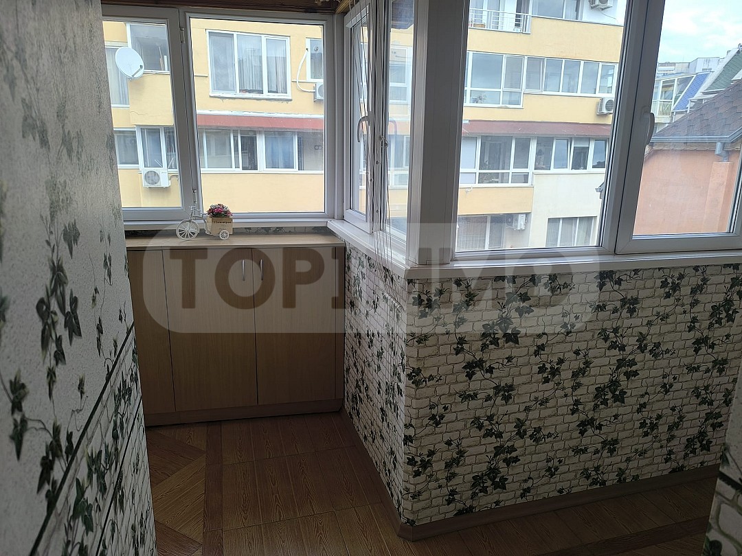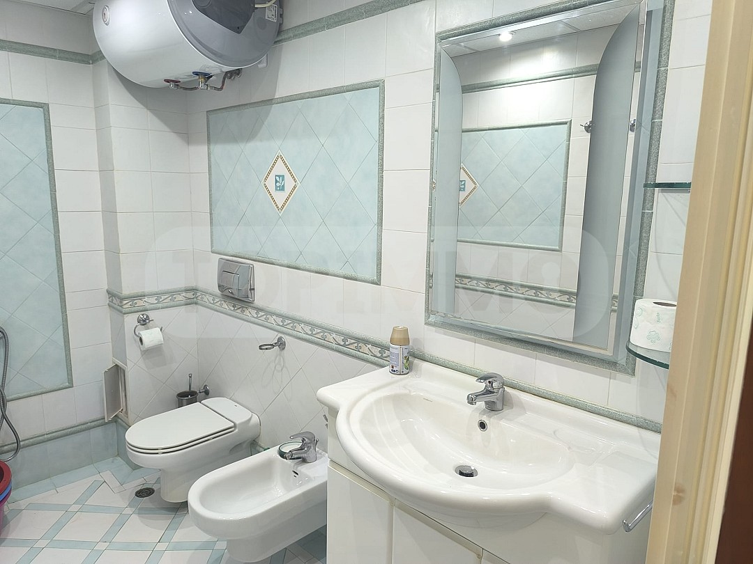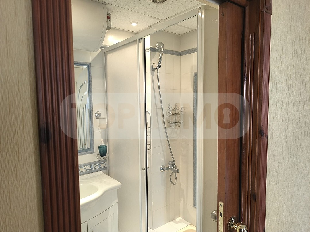 Планировка: прихожая, гостиная с кухней, спальня, одна небольшая комната, ванная комната с туалетом и биде, ванная комната с душевой кабиной, 2 террасы, одна из которых большая, со шкафами и застеклением. Кухня полностью меблирована. Отопление – кондиционер.