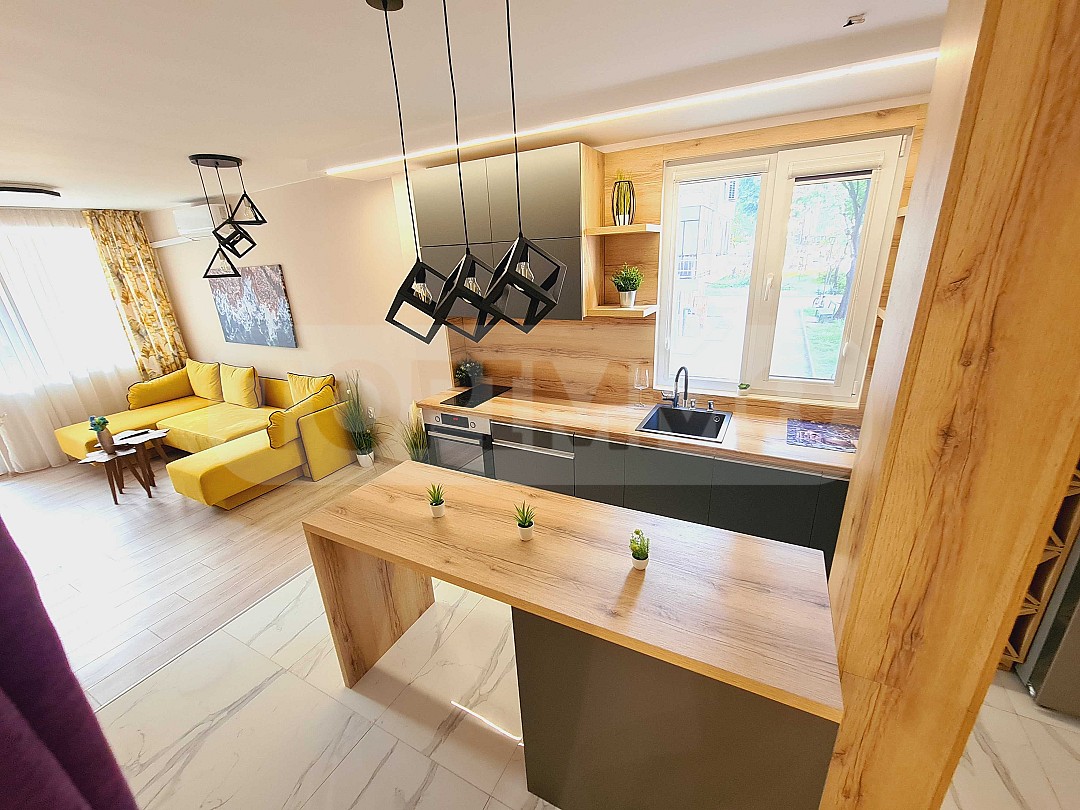 TOPIMMO предлагает в аренду большую солнечную трёхкомнатную квартиру в районе автобусной остановки «Нептун» за Муниципалитетом Варны, в нескольких минутах от центра города и Приморского парка.