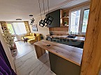 Планировка: гостиная с кухней площадью 40 кв.м, две спальни, отдельная ванная комната и туалет, две террасы. Квартира меблирована всей необходимой мебелью высокого класса: 4 кондиционера, встроенная техника: духовка, посудомоечная машина, стиральная машина, сушилка, включая посуду, одеяла, полотенца.