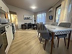Квартира расположена на 2-м этаже пятиэтажного кирпичного дома с лифтом. Квартира состоит из гостиной с кухней, 2 спален, ванной комнаты с туалетом, коридора и террасы. Квартира оборудована всей необходимой бытовой техникой, а также кондиционерами в каждой комнате. Квартира меблирована, включая посуду, постельное белье и полотенца. Окна выходят на юго-восток.