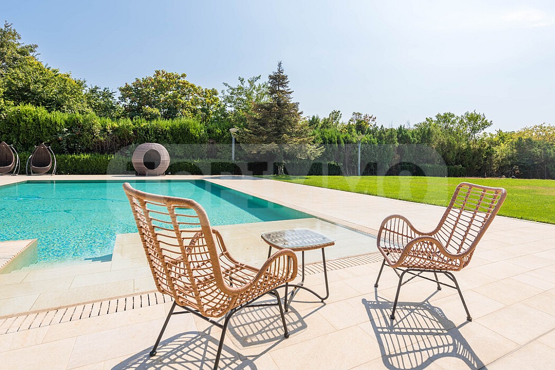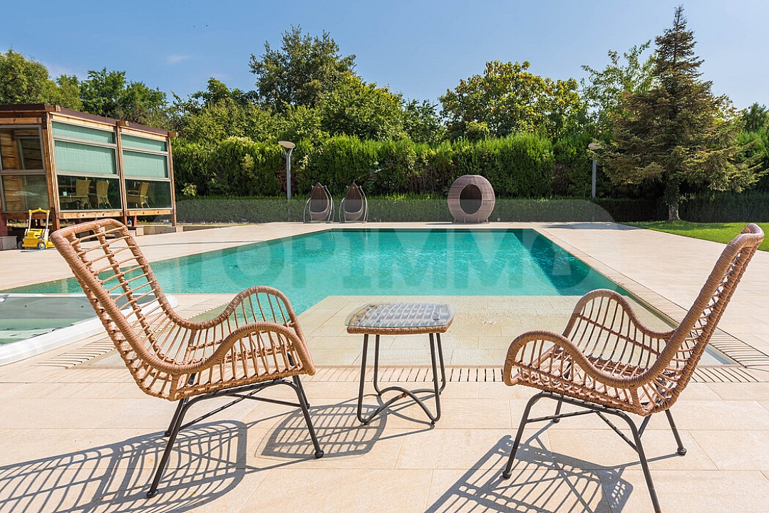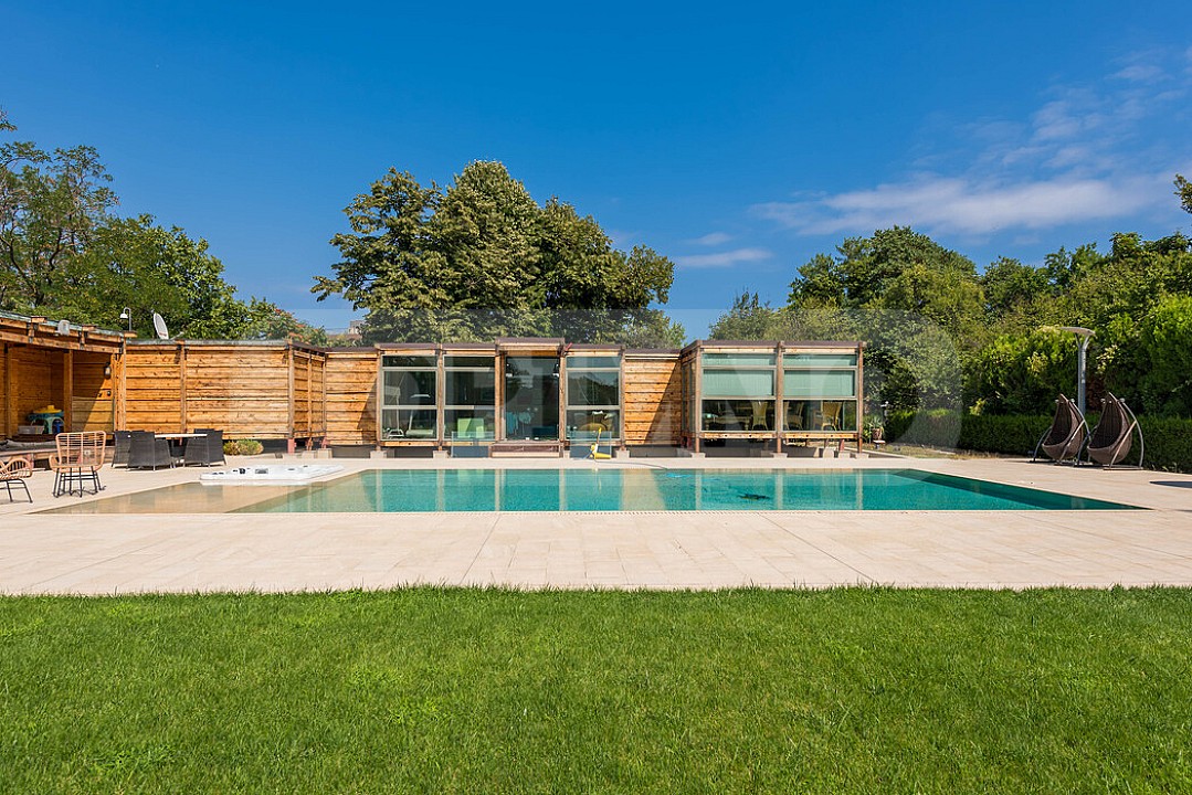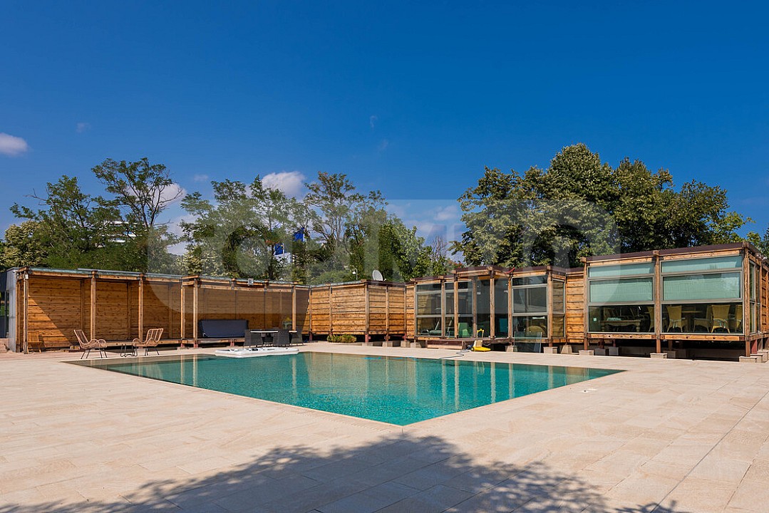 - Бассейн с отдельным тепловым насосом и подогревом, размеры 14 х 6,5 м