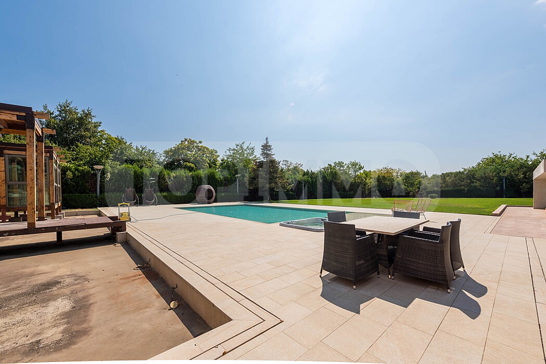 - СПА и летняя резиденция – сауна, несколько видов паровых бань, джакузи с прямым выходом к открытому подогреваемому бассейну, ванная комната с туалетом, спальня.