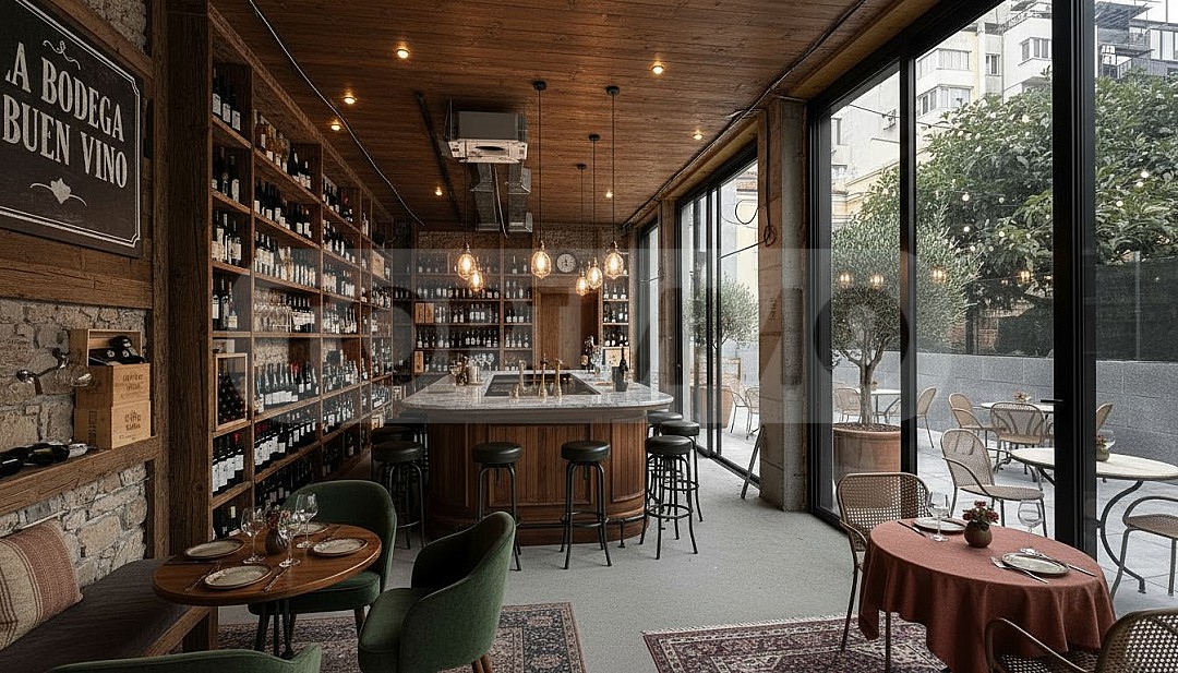 Недвижимость состоит из торгового зала, склада, примерочной и санузла. В винном погребе есть терраса, что является отличной возможностью создать изысканное заведение с характером и атмосферой.