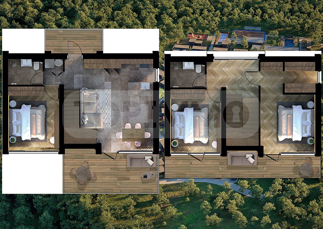Комплексът е от модерни и стилно проектирани частни вили, съчетаващи елегантна архитектура, висококачествено строителство и хармония с природата. Всяка вила разполага със собствено паркомясто, просторни тераси и частен двор, които откриват великолепни панорамни гледки към гъстата дъбова гора. Тук можете да се насладите на уюта и спокойствието на природата, без да се лишавате от удобствата на градския живот.